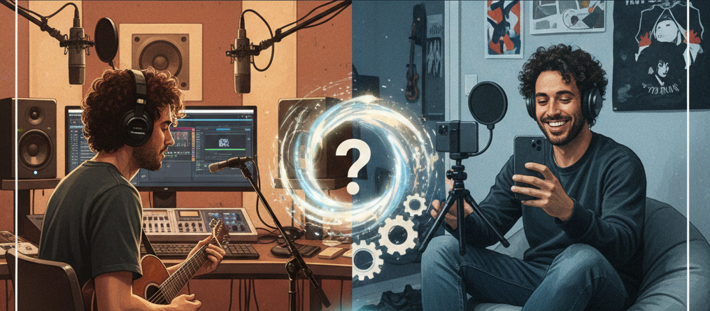 これってめっちゃ難しくて、「どこまでこだわりたいか」なんだよねぇ。凄くローカロリーで済ますならiPhone一つで一発撮りだし、レコーディングするならマイクやオーディオインターフェースが必要で、場合によってはプラグインも必要で、もちろん編集する時間も必要。映像もカメラを用意したりレンズを用意したり、動画編集ソフトを用意したり。
