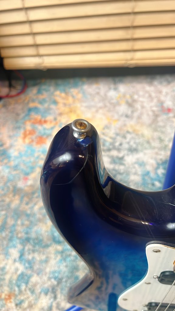 実はですね、かなーり前。2006年とかかなぁ??HKラウンジって場所でライブをしている時にですね、ギター回し失敗してぶん投げちゃったんですよ。ストラップピン付けてたんだけど、外れちゃったみたいで、普通に後ろにぶん投げた形になってしまったんですよねぇ。