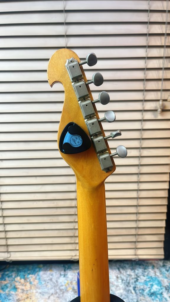 オリジナルではピックガードが黒だったみたい。わたしは2004年頃、3万円の中古で買いました。そこから色々あって、リペアを何度も繰り返して、ある時に「あ、これだ、これだ」って状態になって、そこからずっとメインで使っています。